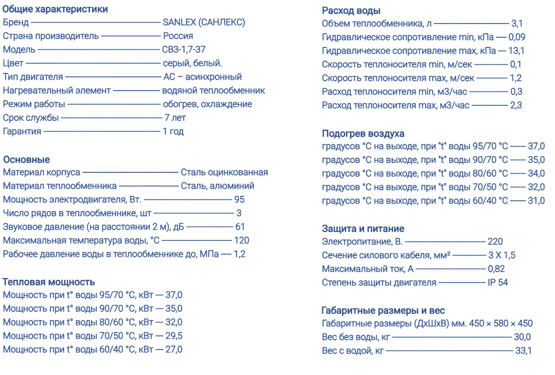 Все тепловентиляторы серии СВ оснащены мощным стальным калорифером с алюминиевым оребрением за счет чего имеют хорошую теплоотдачу по сравнению с медными аналогами.