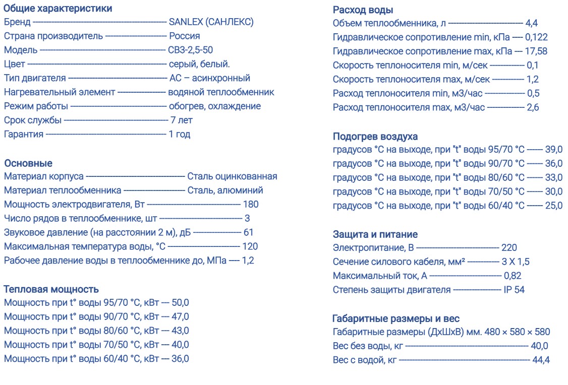 Все тепловентиляторы серии СВ оснащены мощным стальным калорифером с алюминиевым оребрением за счет чего имеют хорошую теплоотдачу по сравнению с медными аналогами.
