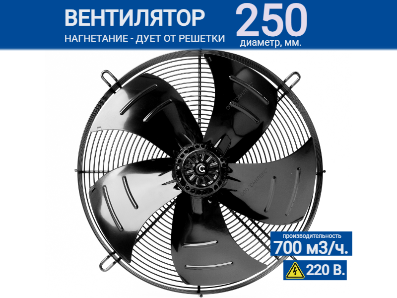- Диаметр лопастей: 250 мм, что позволяет создавать мощный поток воздуха для вентиляции больших пространств.