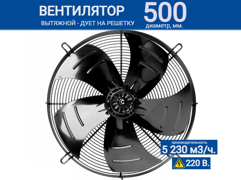 - Диаметр лопастей: 500 мм, что позволяет создавать мощный поток воздуха для вентиляции больших пространств.