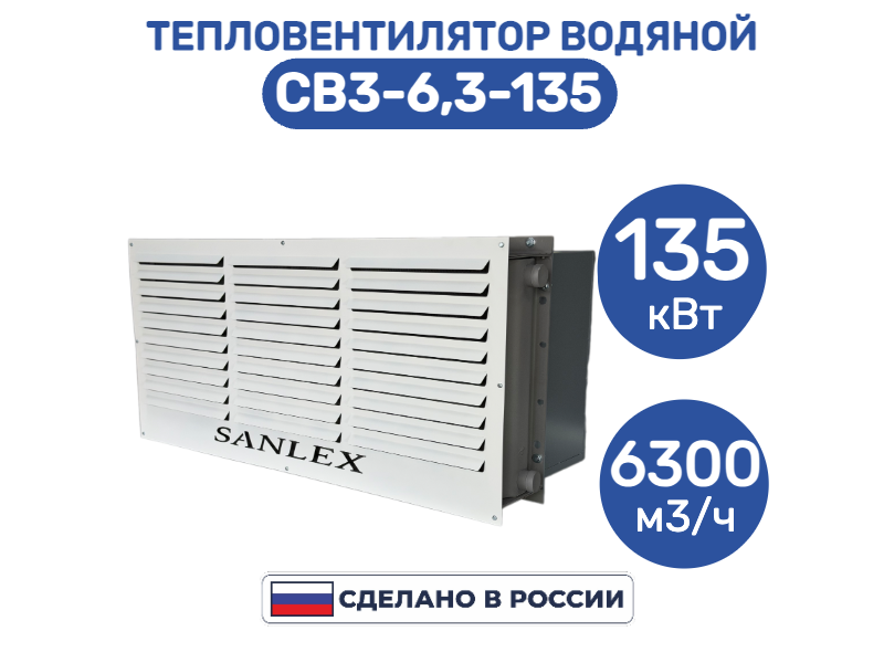 Главная » Каталог » Тепловентиляторы водяные СВ » Тепловентилятор водяной СВ3-6,3-135